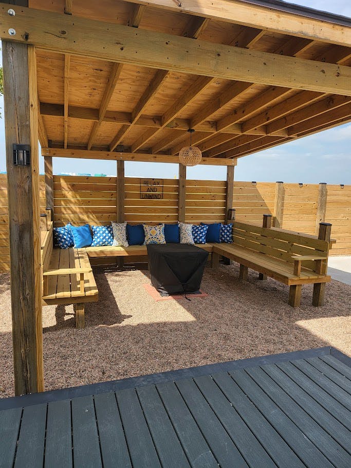 We have a cozy little hang out area in the back of Kansas Country Inn that features a fire pit, as well as a charcoal grill and picnic tables. It’s a perfect place to relax in the evening or to have breakfast in the morning.